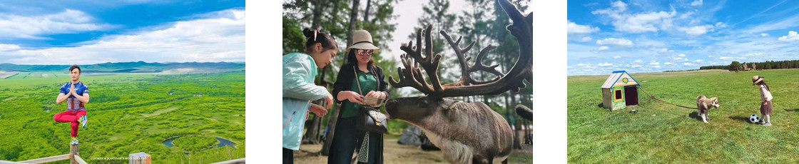 早上出發(fā),攝影、補(bǔ)氧絕佳地帶,還可以到原始森林里采花,采野果,采蘑菇,采松塔,最重要的是采集一些喂馴鹿的苔蘚!途徑林場【得耳布爾】,大山里的小鎮(zhèn)去追尋中國最后一個馴鹿部落——【興安神鹿園】,體驗從原始社會直接過渡到社會主義社會的鄂溫克獵民生活,近距離的與馴鹿、梅花鹿接觸。給他們喂食苔蘚,與它們親密合影。如您帶孩子的話,這可是難得一次親子活動!有興趣可免費(fèi)參觀農(nóng)墾大型農(nóng)業(yè)機(jī)械(依據(jù)當(dāng)天具體行程安排時間而定);前往邊防小鎮(zhèn)黑山頭;途徑弘吉喇布蒙古大營;相傳成吉思汗的妻子出自這個部落。(可在門口拍照留下美好的時刻。我們不安排進(jìn)景區(qū)內(nèi)參觀)